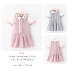 即納 フラワー刺繍襟プリーツレトロワンピース ピンク グレー ガールズ キッズ 半袖 ワンピース アンシャンテプティ本店 レトロ ワンピース 洋服 子供のドレス